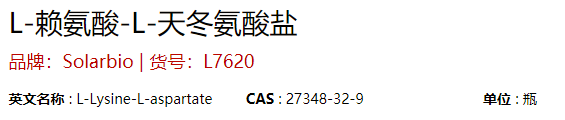 产品名称: L-Lysine-L-aspartate L-赖氨酸-L-天冬氨酸盐